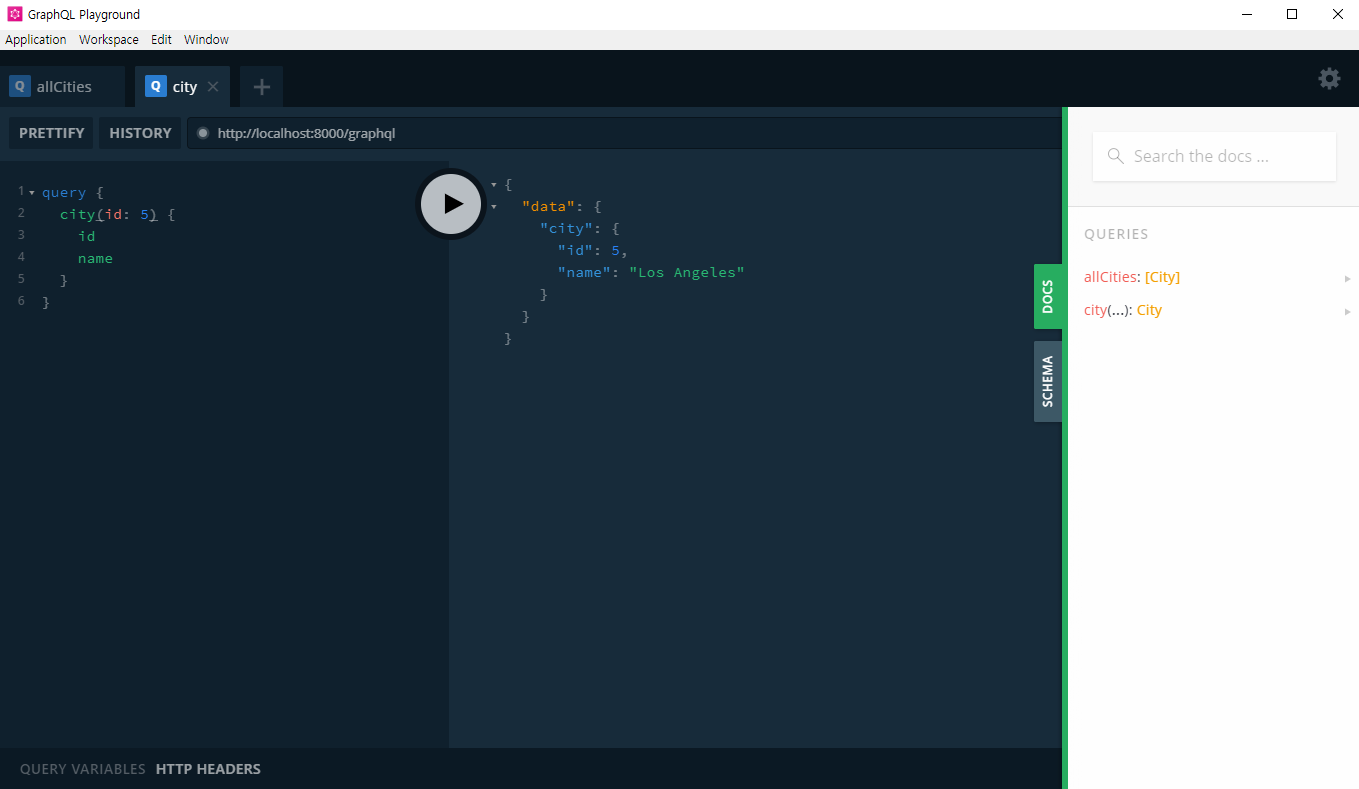 서버를 시작한 후 PlayGround를 실행해서 DataFetcher가 제대로 등록되었는지 확인합니다.