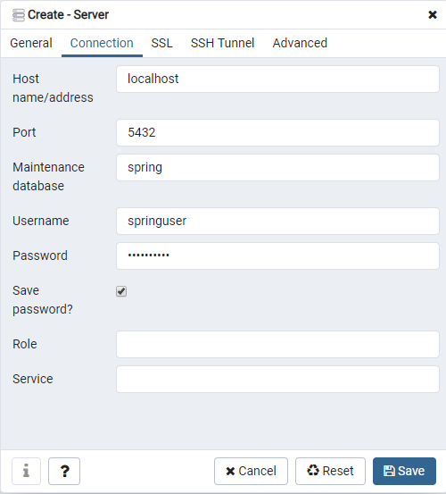 $ GRANT ALL ON DATABASE spring TO springuser;